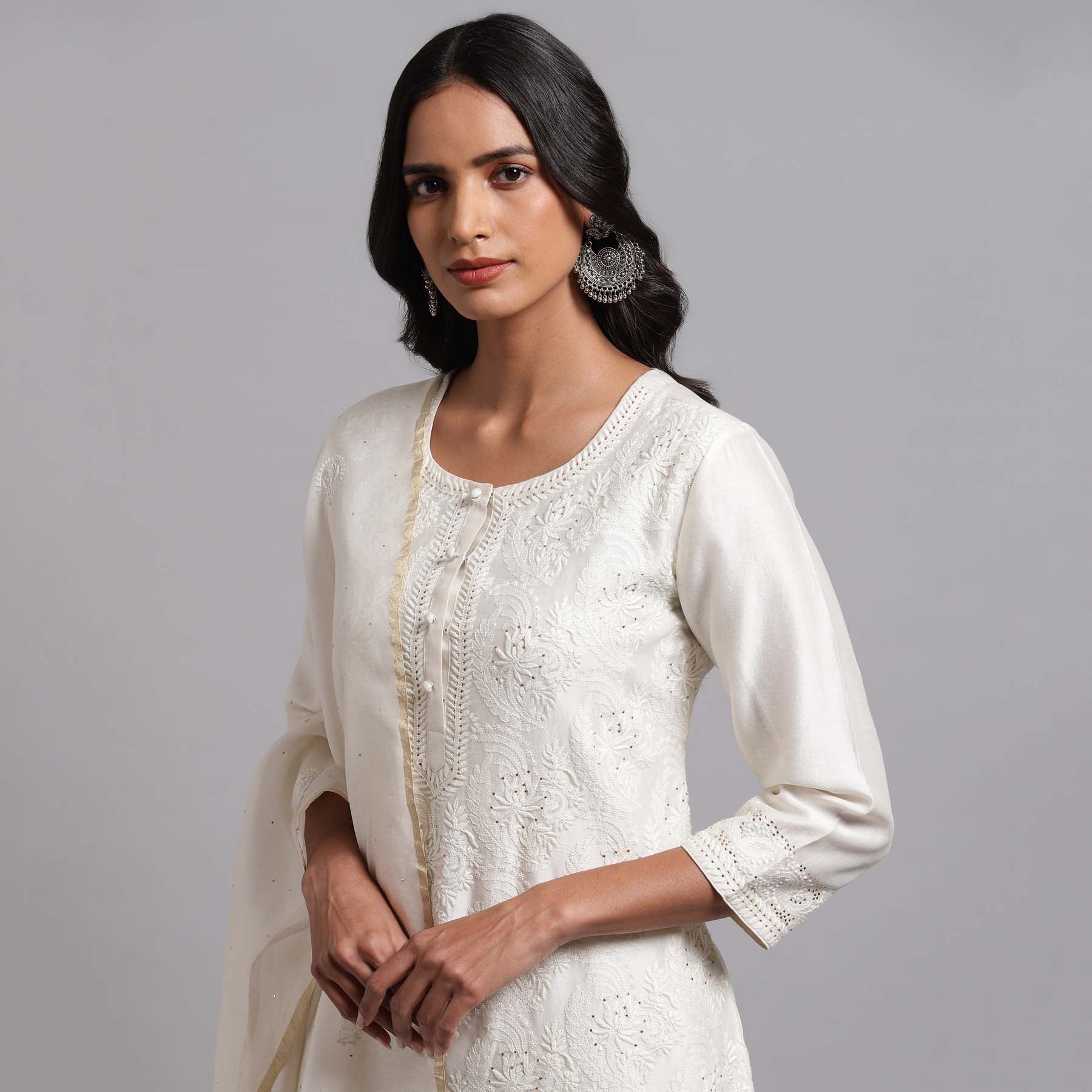 Chikankari Ivory Jaal Kurta
