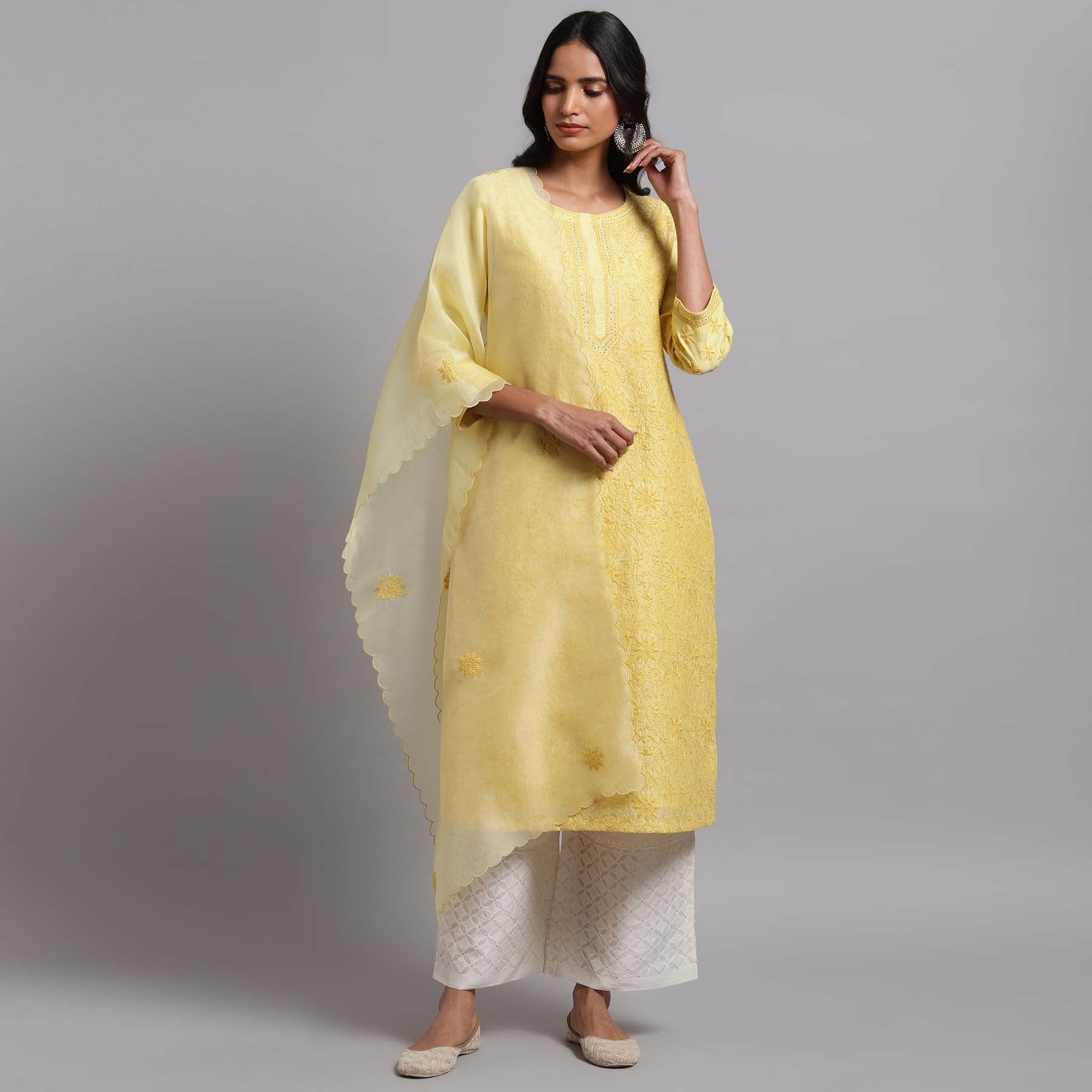 Chikankari Jaal kurta- Yellow