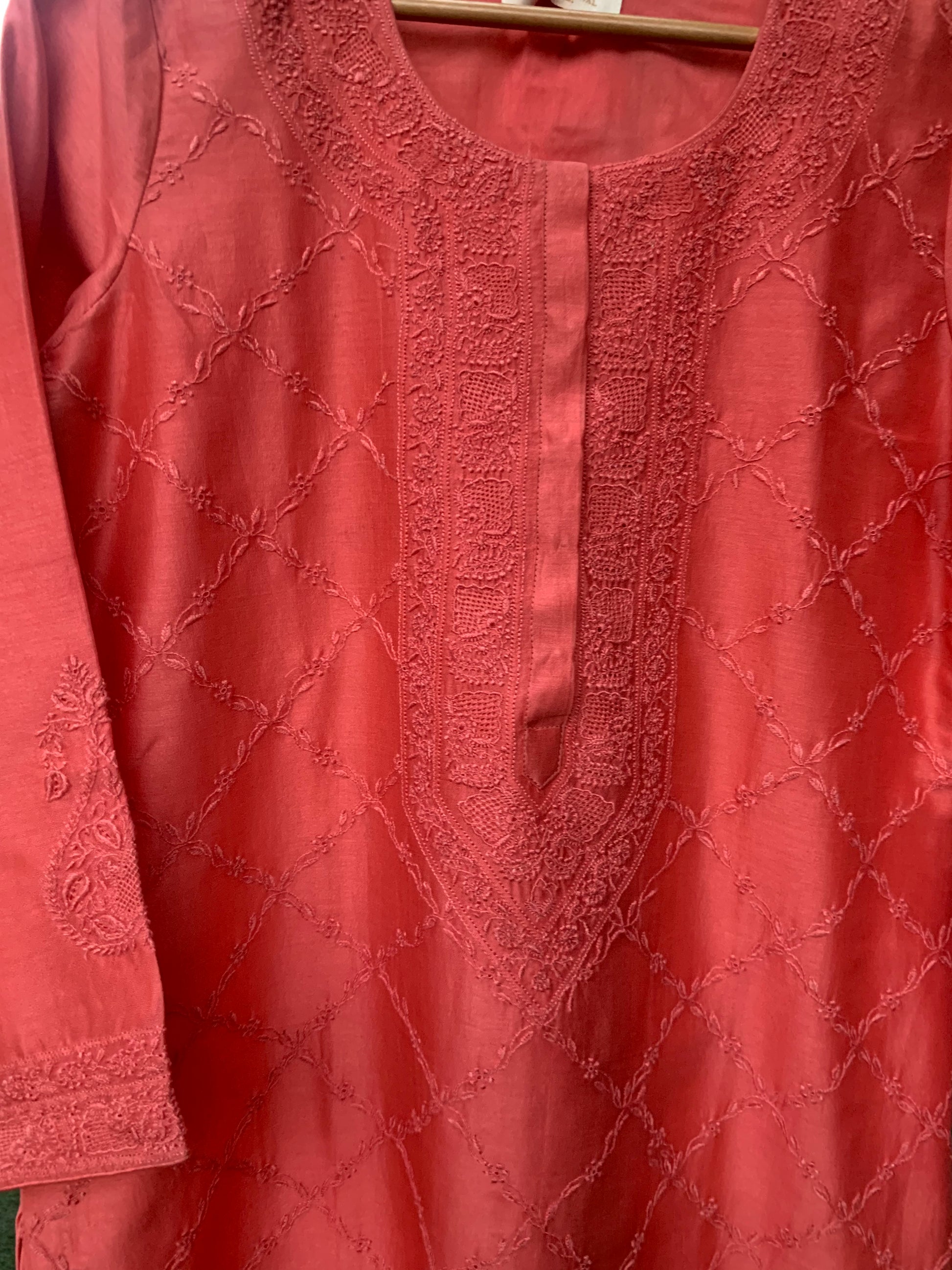 • Chikankari jaal kurta displaying Jaali, Patti, kauri, pechni, balda, hathkati and Phanda